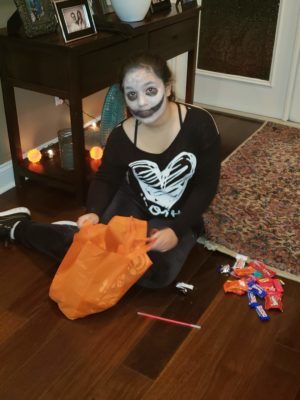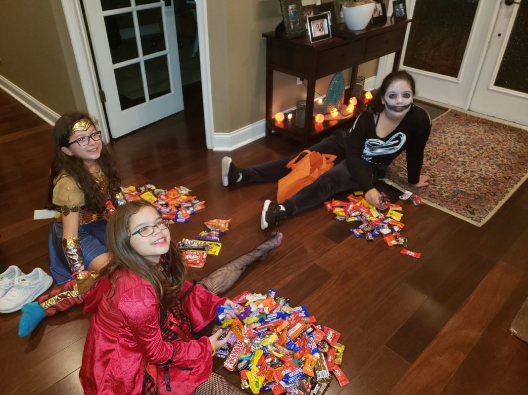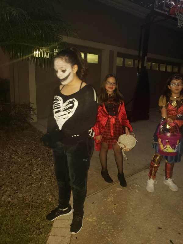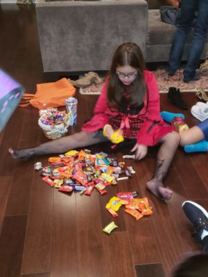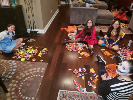 * Estuvimos invitados a casa de los Kotroba para Halloween este año. Fuimos “Trick or Treating” y luego las chicas intercambiaron golosinas.